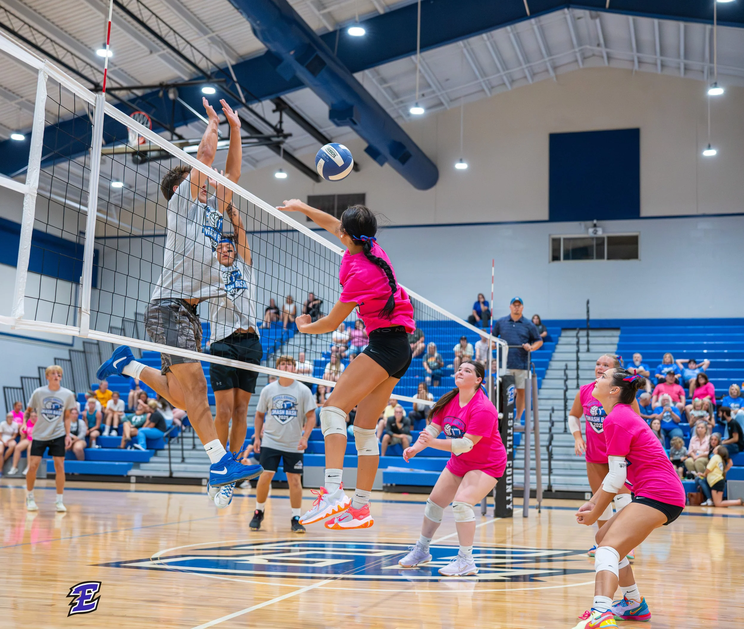 High School Volleyball game action.